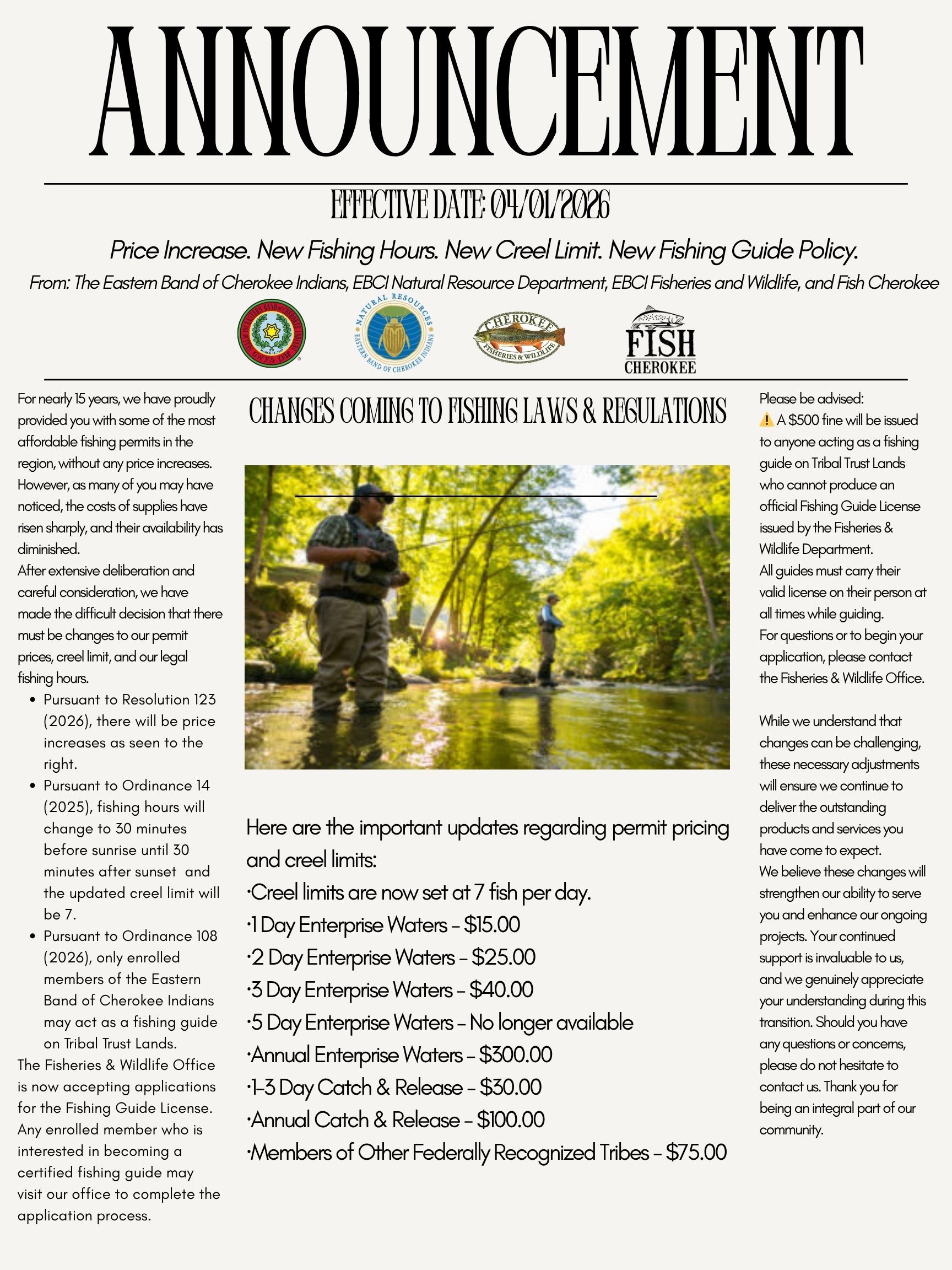 **News Alert 3/23/2026 Important Changes To Cherokee Fishing Laws & Policies**