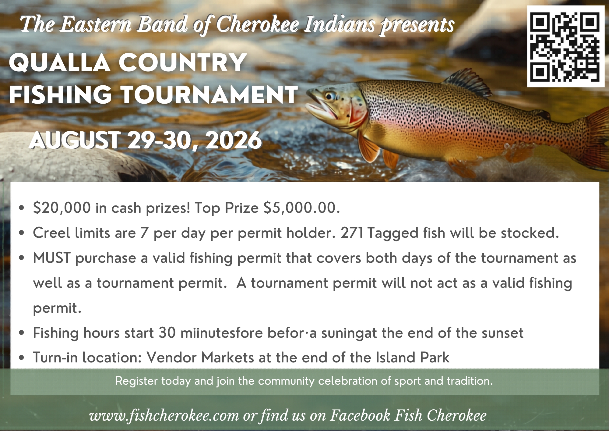 August 29, 2026 - August 30, 20262026 Qualla Country Fishing Tournament